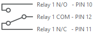 Pin 11 is Normally Closed. When Relay 1 is activated, pin 11 is opened and does not allow voltage to pass. Pin 11 allows voltage to pass through when Relay 1 is deactivated. Pin 12 is the common leg of the relay.