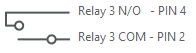 Pin 4 is Normally Open. When Relay 3 is activated, the relay is closed and allows voltage to pass through. Pin 2 is the common leg of the relay.