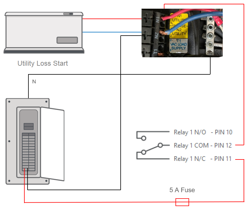 When there is a power failure, the grid goes offline and the batteries are used to power loads and the utility loss terminals on the generator.